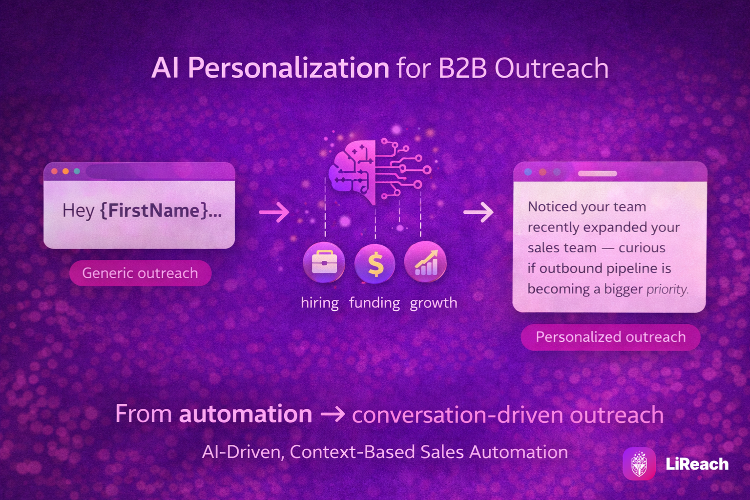 This transforms outreach from template-based messaging into context-driven conversations.