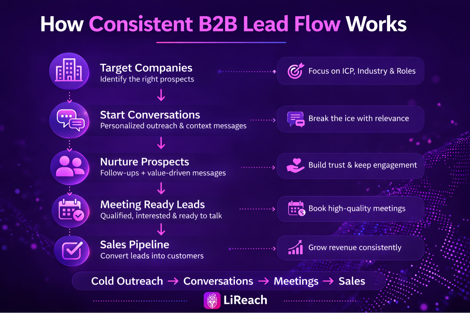 But after analyzing outbound systems across multiple B2B companies, the LiReach team has seen a different pattern.