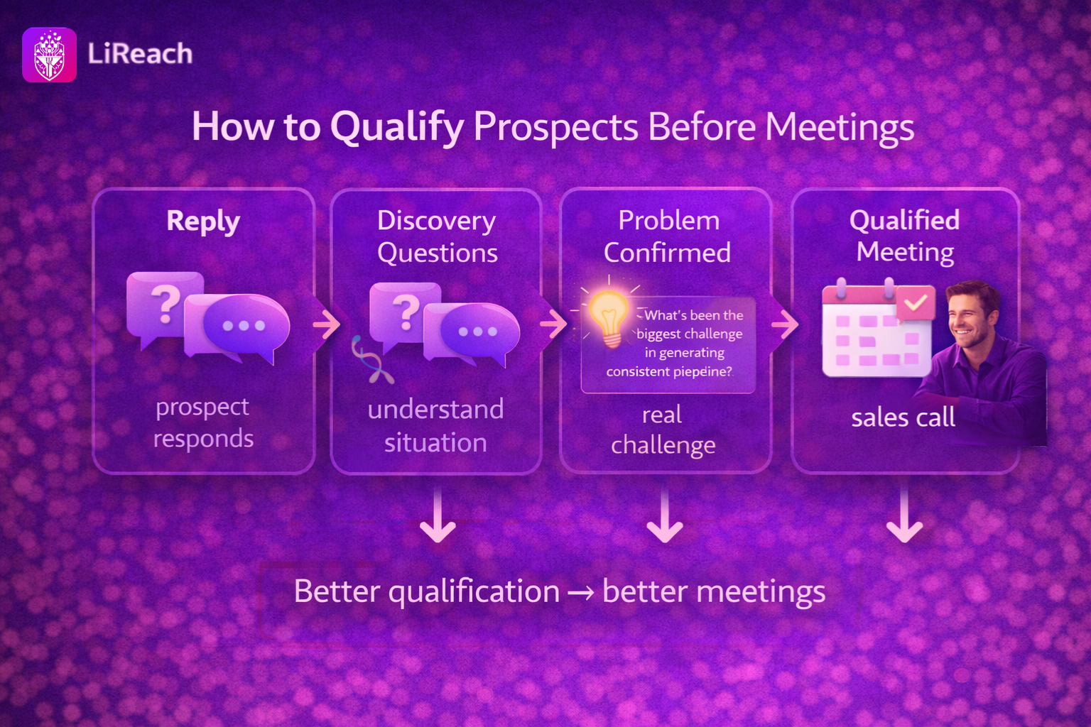 At LiReach we guide conversations toward meetings only after basic qualification happens.