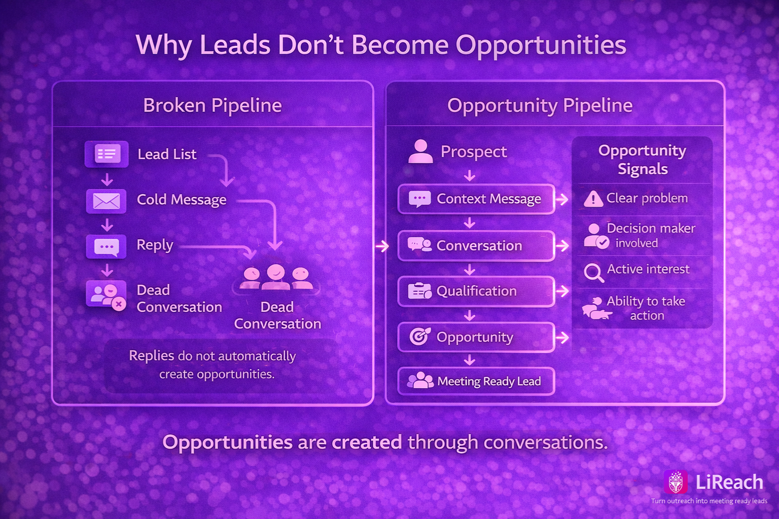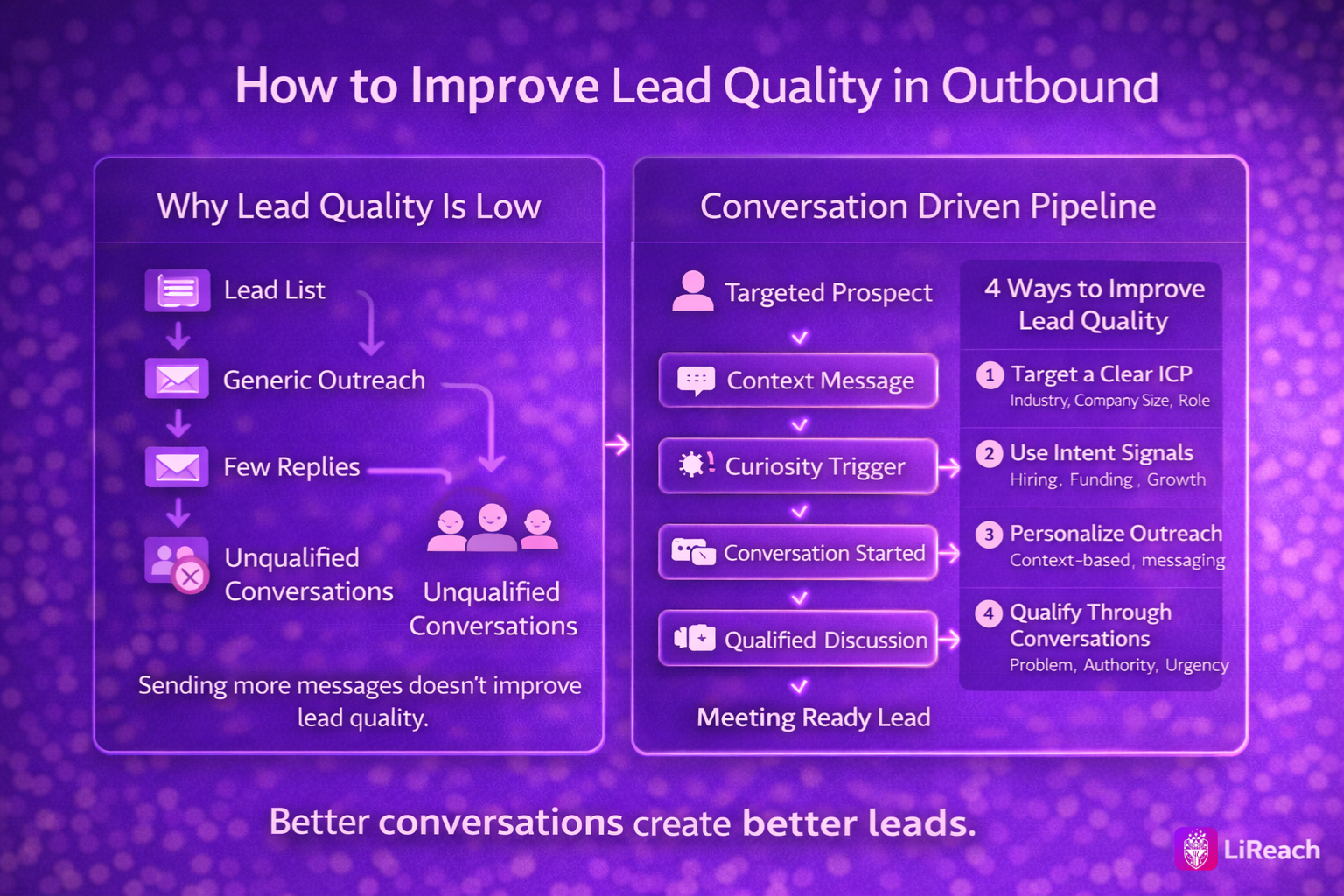 ""Most outbound campaigns generate replies but very few qualified discussions.""